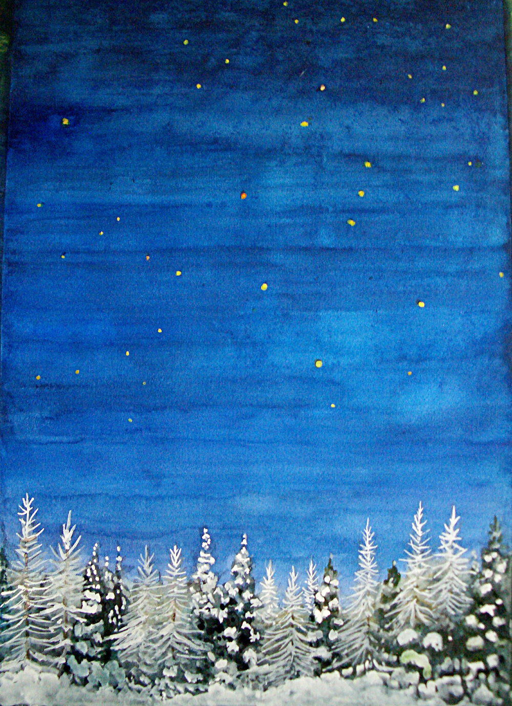 窓から見た景色に星を描きました。この絵を額織りに