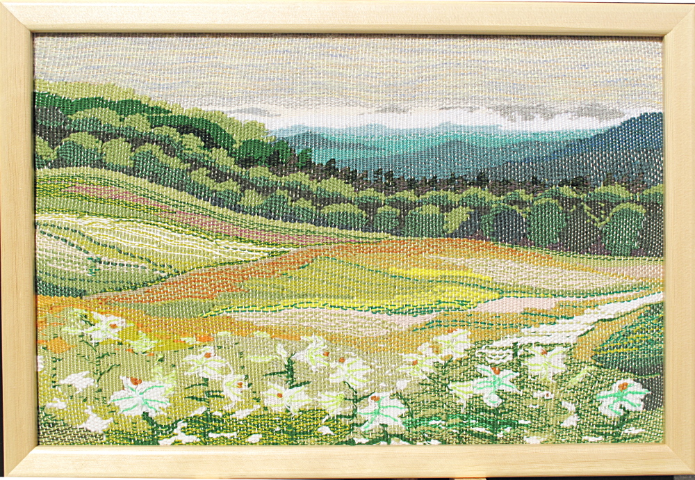 小川村展望台からの眺めをスケッチして絵織物にしました。