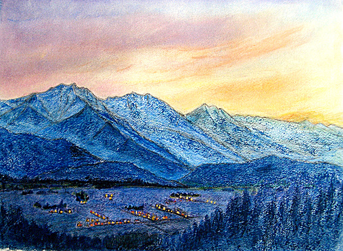 安曇野の夕焼け 縦40㎝ 横58㎝